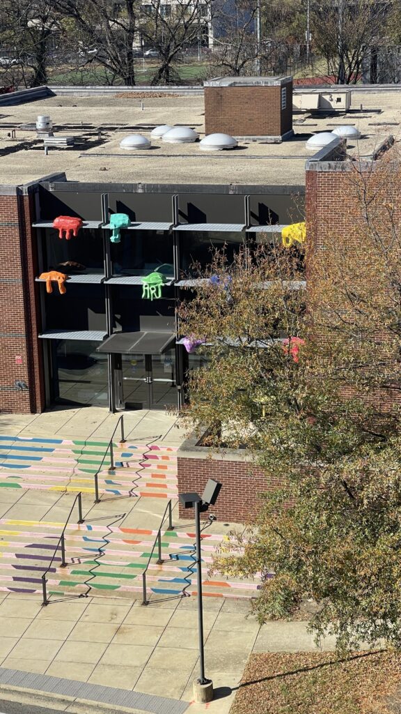 “The students’ excitement at seeing the sculptures installed outdoors and how the pieces refreshed the building’s visual character was a highlight of the semester,” says Carollo.