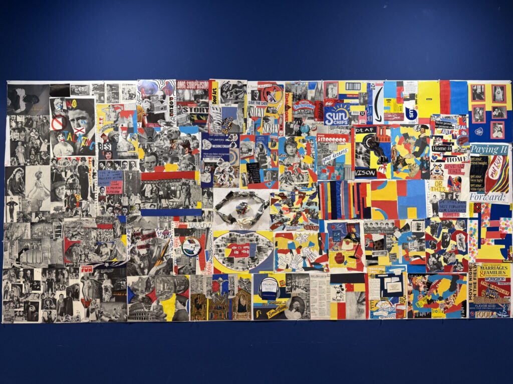 Students also create their own art, keeping junk journals and working together on a collaborative mural, pictured above, culminating in hosting a showcase of their work. Rourke exposed students to ARTivism, encouraging them “to examine how Deaf artists use their work to raise awareness and foster community dialogue.” In another project, she posed a De’VIA Challenge to students who had to use a lightbulb and a mirror to symbolize key concepts of affirmation and resistance. “Each student developed a theme that reflected their own experience and understanding of Deaf identity,” she explains.