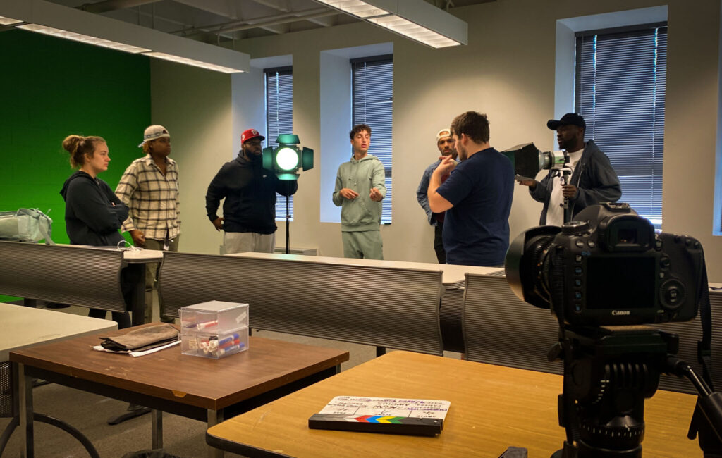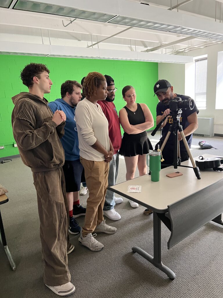 Program Director Scott Carollo recently attended the class’s all-day filming workshop, observing, “The entire class worked together nonstop from 9:00 a.m. to 4:00 p.m. without a single complaint. The energy in the room was incredible; everyone was so excited about their film project…I am truly proud of our students and grateful to have Veru teaching this course.”