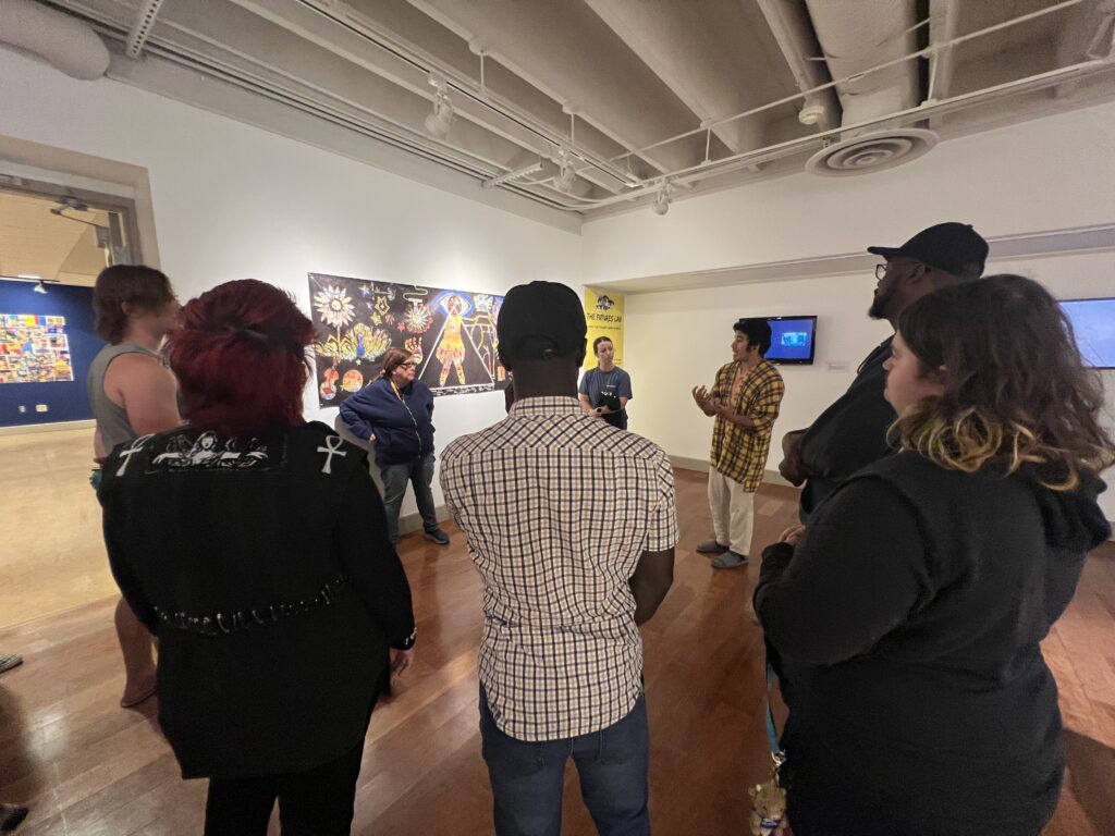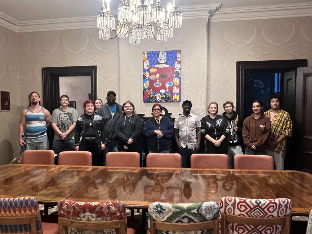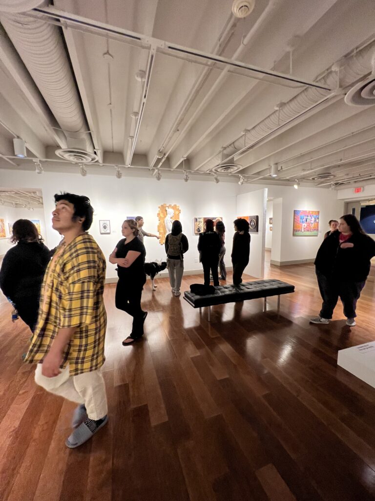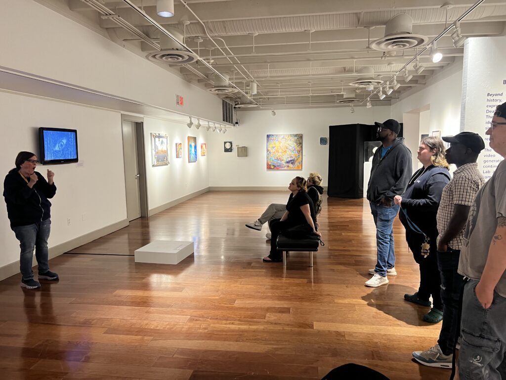 Together, the group went on three art tours: first, to discuss the art curation in House One; the “Beyond the Waves: Deaf Art,” exhibit in the Linda K. Jordan Gallery; and “We, Native Deaf, Are Still Here!” in the National Deaf Life Museum, where Rourke’s land acknowledgement mural is on display.