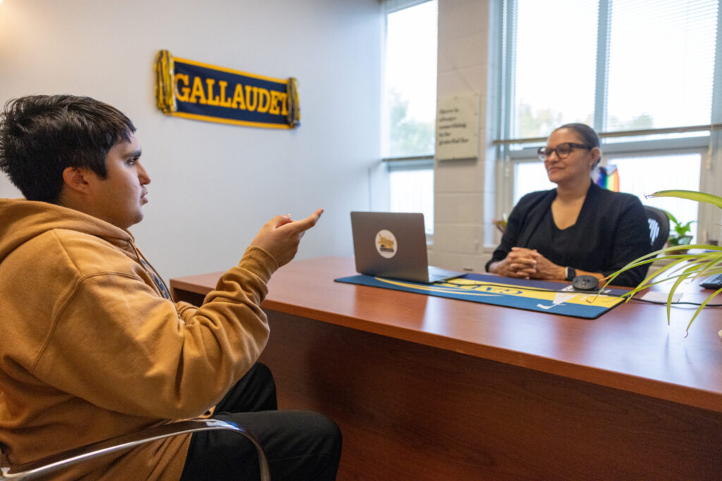 Working in Texas and then Maryland in K-12 settings prepared her well. “Both states use IEPs and 504s, but the structures look totally different…Ultimately, the student gets the same service, yet the processes to get there are so different,” she explains. She applies this knowledge to her work at Gallaudet, where students come from 50 states and beyond. “I have to navigate a wide diversity of needs that students have, which means that the service I provide will have to be different, too. Just because I’m dealing with Vocational Rehabilitation (VR) funding, the kind of service I provide may vary, because of the different states involved,” she explains.