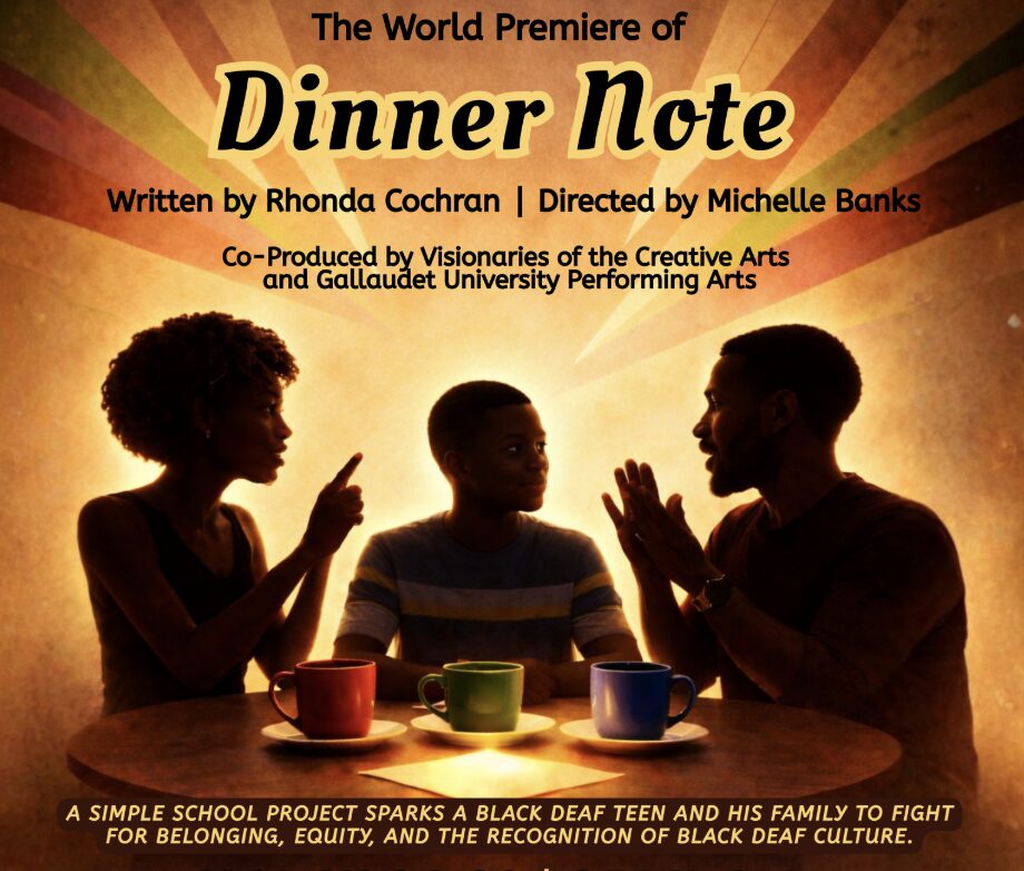 The experience left such an impression on Banks that she was determined to bring Dinner Note to D.C. Her theatre company, Visionaries of the Creative Arts (VOCA), is a platform for deaf, deafblind, deaf plus, and hard of hearing BIPOC artists to showcase their artistic work both on stage and backstage. “I wanted to bring that idea of a Black Deaf family showing a strong, supportive Black Deaf culture and BASL to the light. There aren’t enough stories like that on stage,” says Banks.